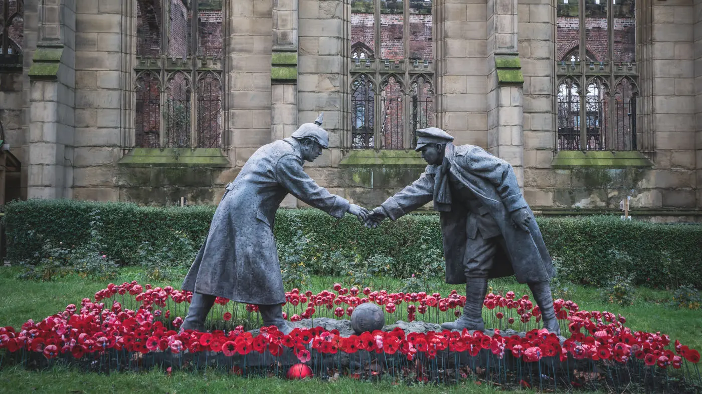 Soldaten uit beide kampen liepen het niemandsland in. Ze schudden handen. Wisselden sigaretten uit. Deelden chocolade met elkaar. Foto’s van vrouwen en kinderen werden uitgewisseld. Er werd gelachen. Er werd zelfs gevoetbald, tussen de kraters en het prikkeldraad. Zonder de moordende orders bleven enkel mensen over die zichzelf in de ander herkenden.